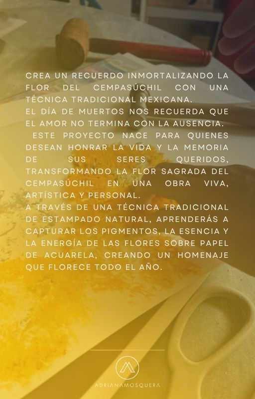 Crea un recuerdo inmortalizando la flor del cempasúchil con una técnica ancestral de estampado natural.