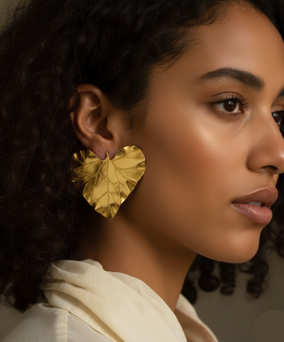 Estos pendientes de corazón inspirados en la naturaleza combinan diseño botánico, arte y sofisticación.